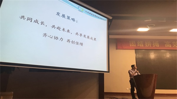 會議在周軍副總經理的主持下順利召開,周總以一滴水的故事教育大家只有每位員工真正融入公司這個大家庭,才能發揮個人最大的才能,只有團結高效才能創造成功!